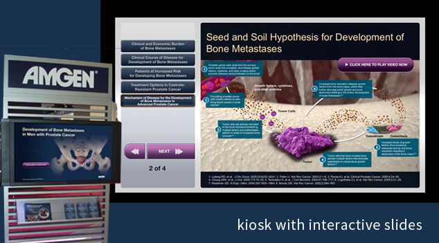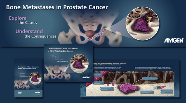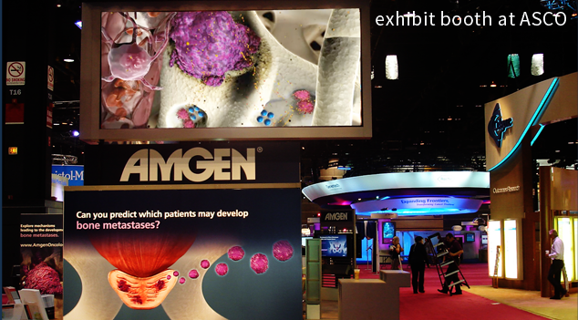 Produced for Amgen Oncology, this detailed campaign consisted of an award-winning 3D stereoscopic animation with oversize banners and panels for booth, interactive slides, print components for booth distribution, and coordinated web media. The initial launch was completed on an accelerated schedule of 4 months to premiere all components at a dedicated exhibit booth to disease state education at the Annual Society of Oncology (ASCO) annual international meeting. Not only were all materials delivered on time, the sponsors of ASCO complemented the Amgen Oncology team on the engaging visuals and well presented scientific story.