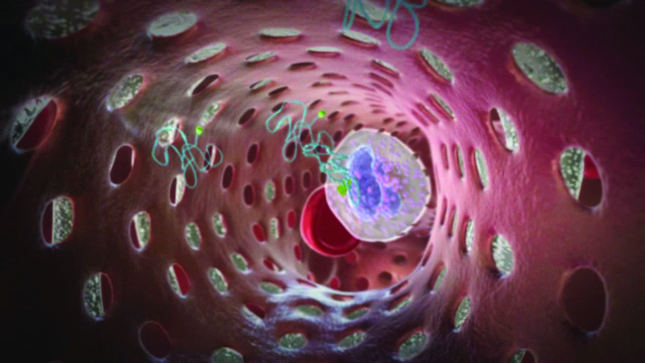 The challenge for this assignment was developing a short animation that explained the mechanism of action for Neulasta® pegfilgrastim. Through a team effort with the medical liaisons and clinical scientists, this animation presents how elegantly the natural function of the immune system is enhanced by the introduction of an artificial growth factor, Neulasta, to activate the growth of immature neutrophils. By selecting key scenes like cell development in the bone marrow and the glomerular capsule of the kidney the animation succinctly depicts the action of Neulasta from stimulating white blood cells to its elimination later in the kidney. My role as creative lead: master the science of the white blood cell life cycles, manage the script and translate the content into storyboards, work with the account manager to incorporate client feedback, and guide the translation into final product.